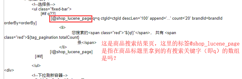 那个标签@shop_lucene_page拿到的应该是对应含q关键字的商品标题的数组集合吧,那有没有可以拿到有q关键字的文章标签的数组的标签呢 |