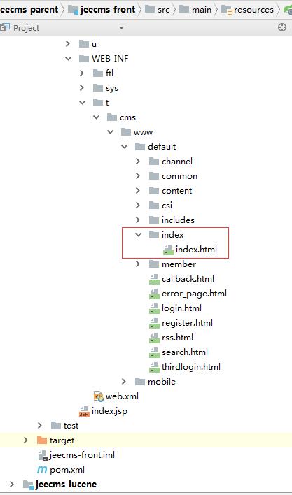我看您目前的提示是找不到/WEB-INF/t/cms/www/default/index/index.html这个模板文件 您看下您的项目中有没有jeecms这个文件夹