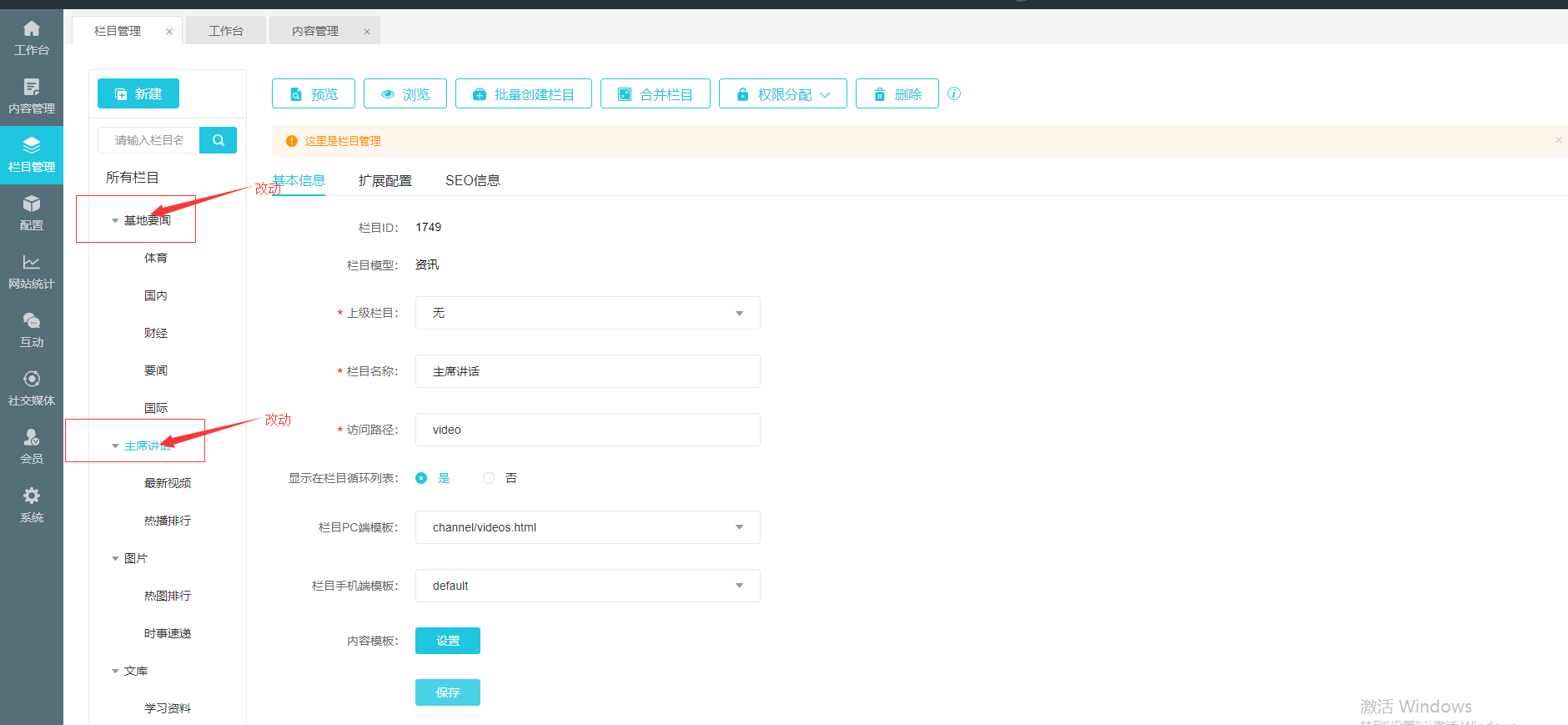 主题 : 在后台栏目管理里修改了网站栏目名,前天没变化