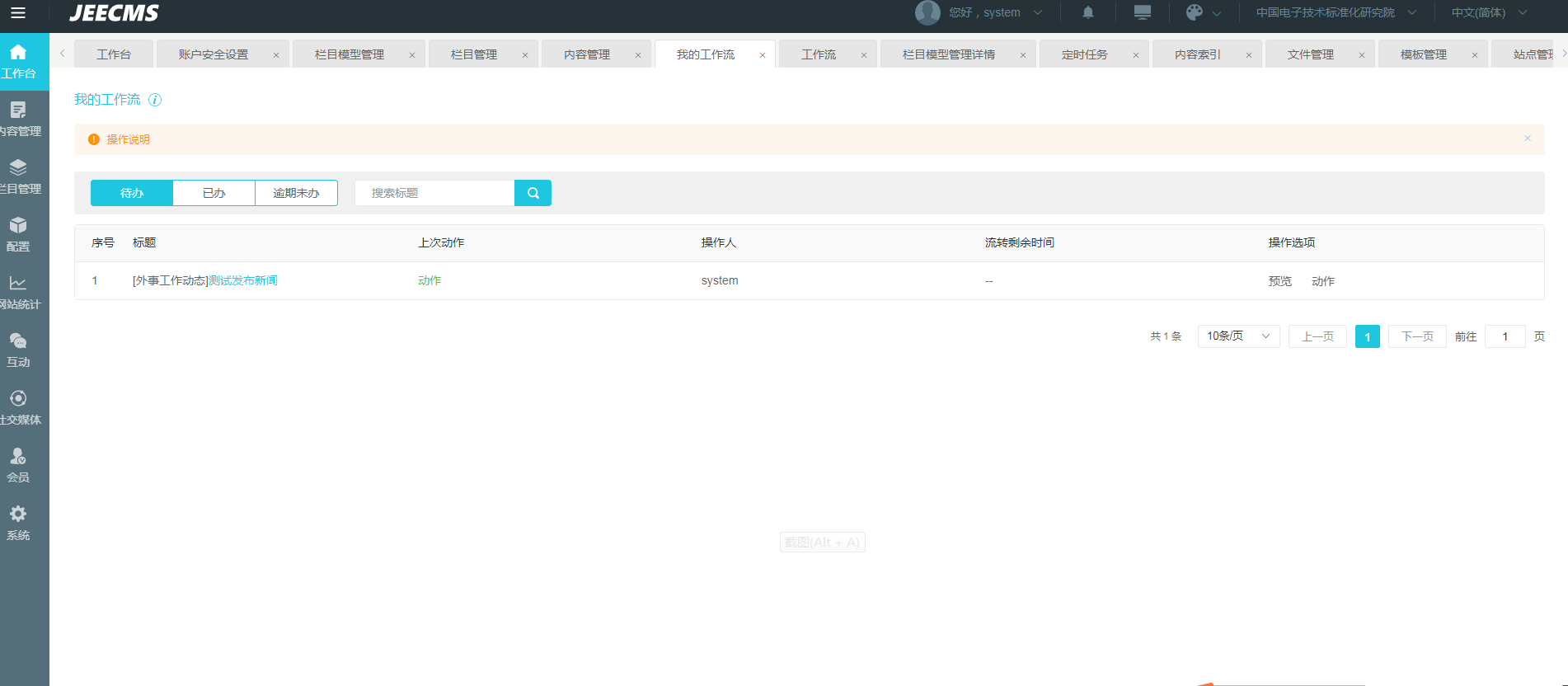 那您就用chenggong发布内容 然后提交审核到system 用system审核这个工作流就完成了