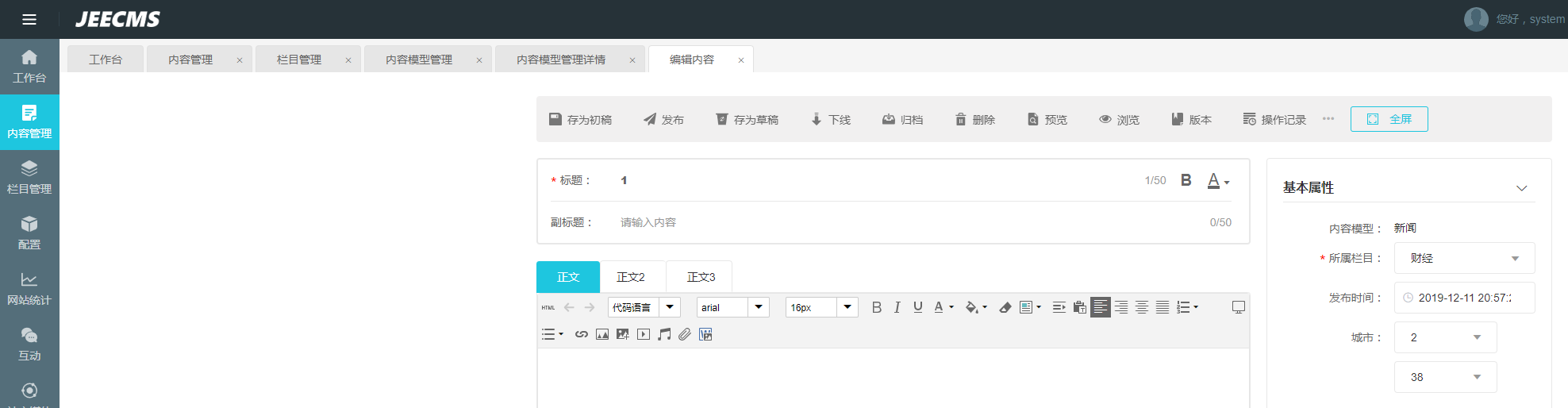 顺便问一下前台内容详情里 用标签显示城市如何显示呢? 我用${content.attr.city.cityArea!}显示不出来,city是我自定义的城市字段 |