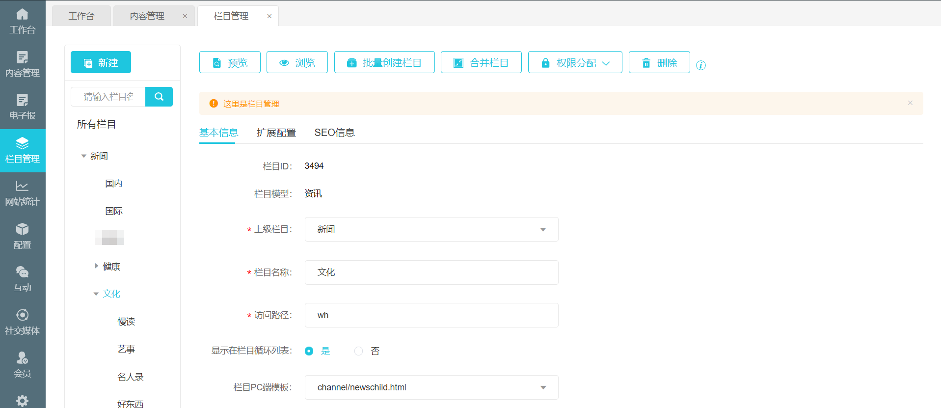 新闻栏目我配置的是news但是跳过去的也是一样