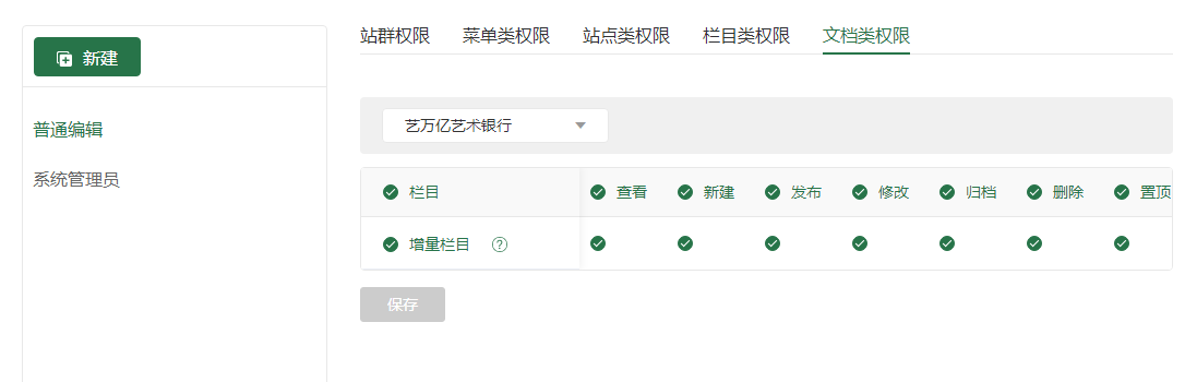 我觉得都有权限了,但栏目管理和内容管理的“新建”还是灰色的,哪里还要设置一下?