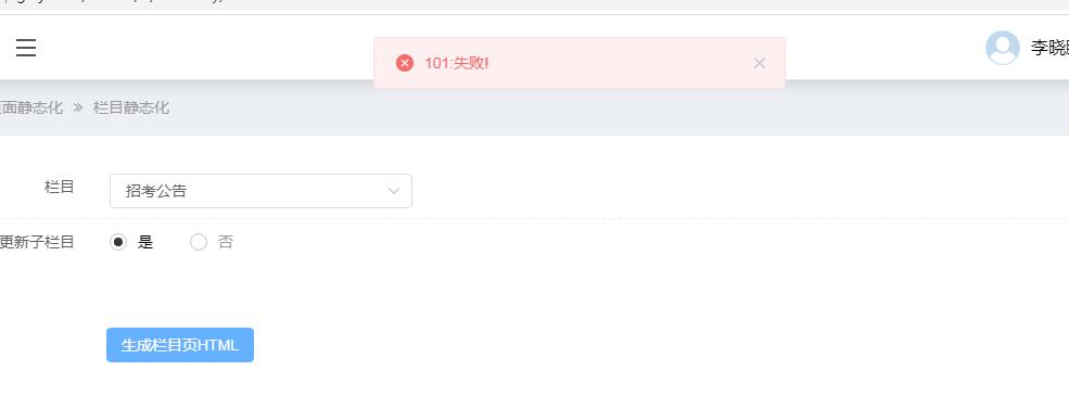 您试下对低级栏目生成下看下也会提示错误吗?  有些是因为接口无法生成太大量的数据所以导致报错的