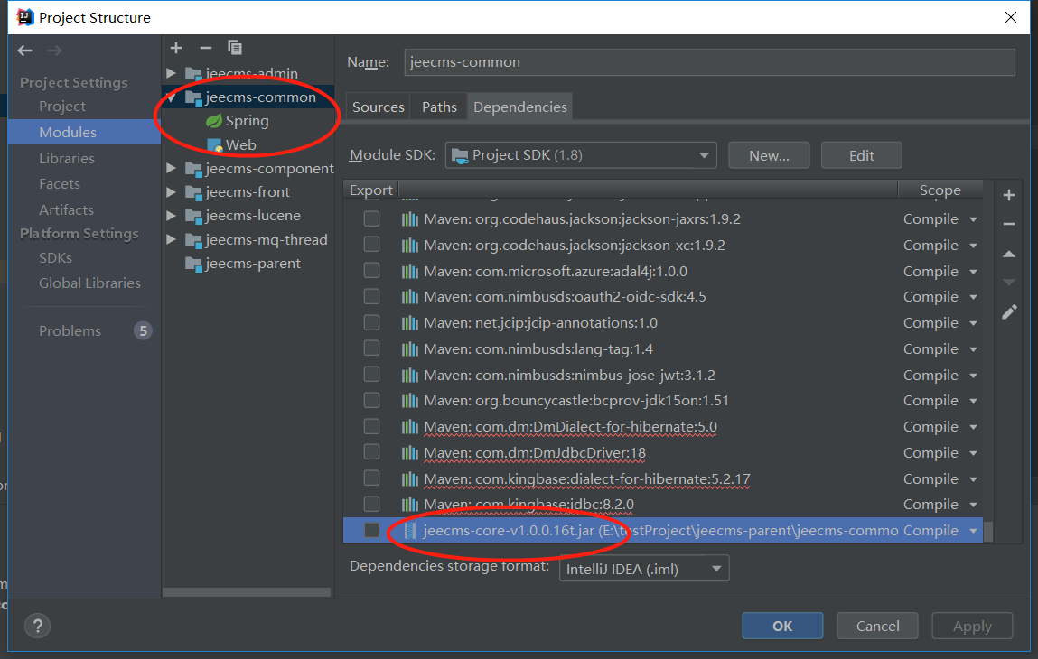 我导入了这个Jar包在jeecms-common里,部分类能找到了,一些还是无法找到。 我手动打开了jar包查看没找到的类在Jar包里是存在的 ![]() |