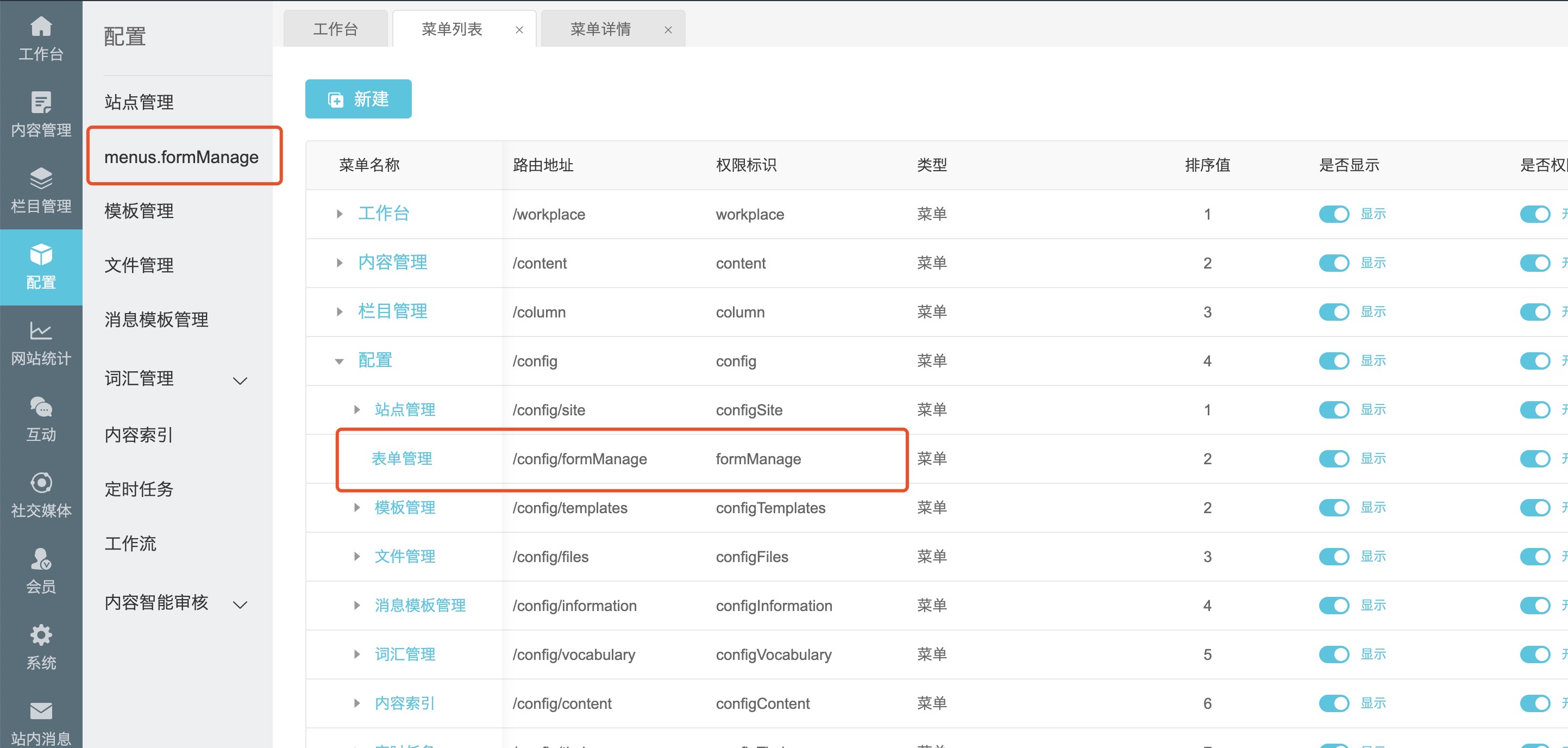 一个一个问题说吧,先说菜单为啥显示的是menus.formManage而不是我命名的表单管理? |