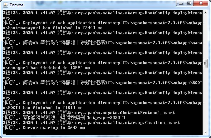 tomcat启动乱码这个是tomcat启动项的问题 一般的启动项都是utf-8格式的 而不是ANSI 还有 您那边项目有没有日志文件