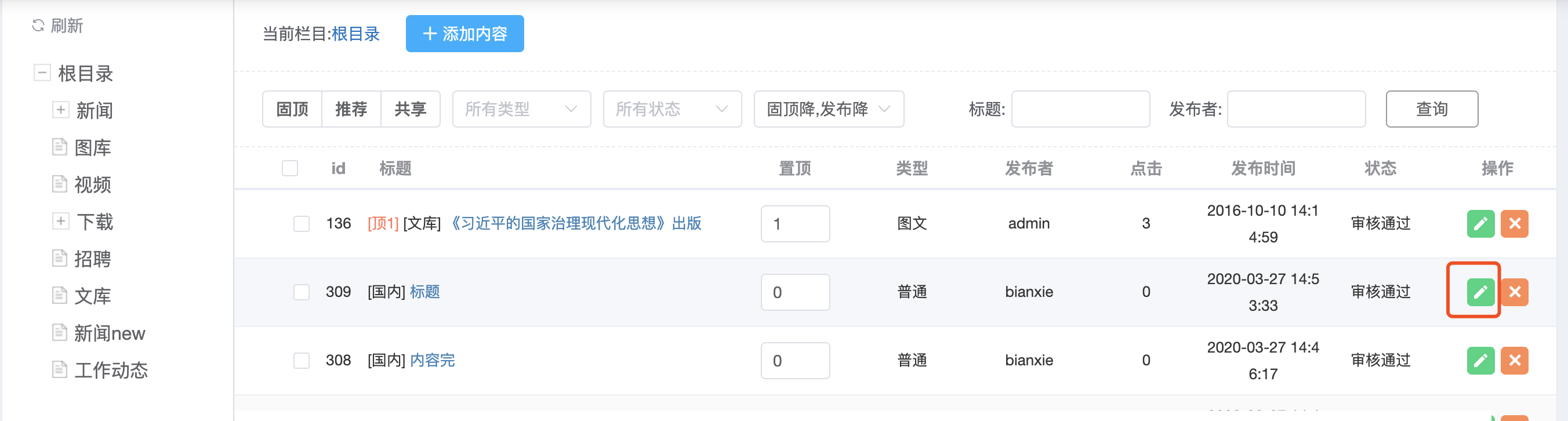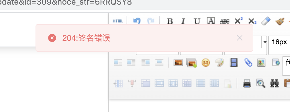 后台java版本用的是9.0(pom文件里这样定义的),vue代码版本是您昨天刚给我发的cmsv9.1-cli。 进入后台管理系统,用admin用户登陆(这里我在登陆页面删掉了登陆验证码内容),点击左侧菜单“内容”-内容管理 ,在页面内点击编辑按钮,编辑完内容后,点下方“修改”,就提示“204:签名错误“了。 ![]() ![]() |