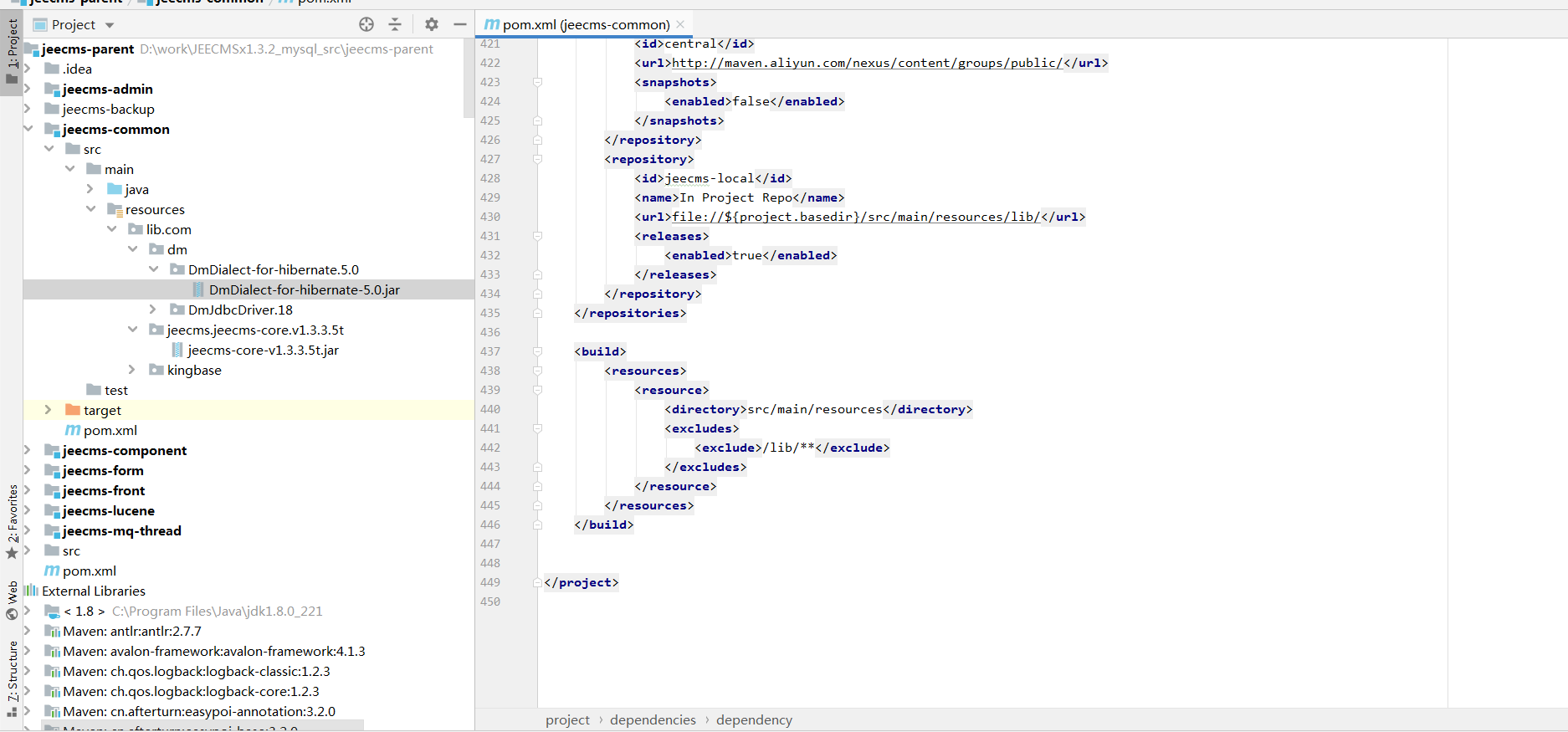 回复第41楼  我的项目下和你截图内容是一致的。maven打包的是这个目录 jeecms-parent