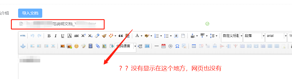 我截的第二张图显示的不是导入了文档嘛?但是没有显示在富文本编辑器,也没显示在网页是为什么?? |
