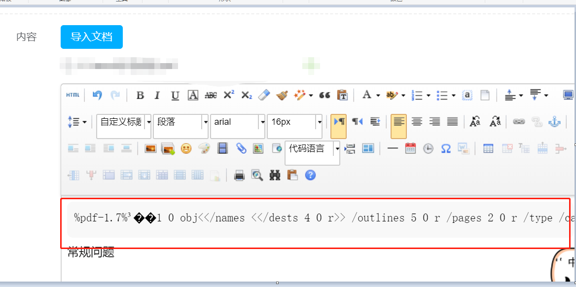 内容编辑内,文档导入PDF格式文件后,出现乱码