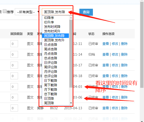 ![]() 看这个图,前台的排序跟后台的排序一样的效果,就是不按照发布时间排 |