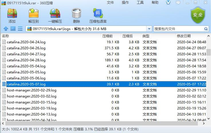 我重启服务后生成了一个新的日志,你看下。catalina.2020-05-11.rar