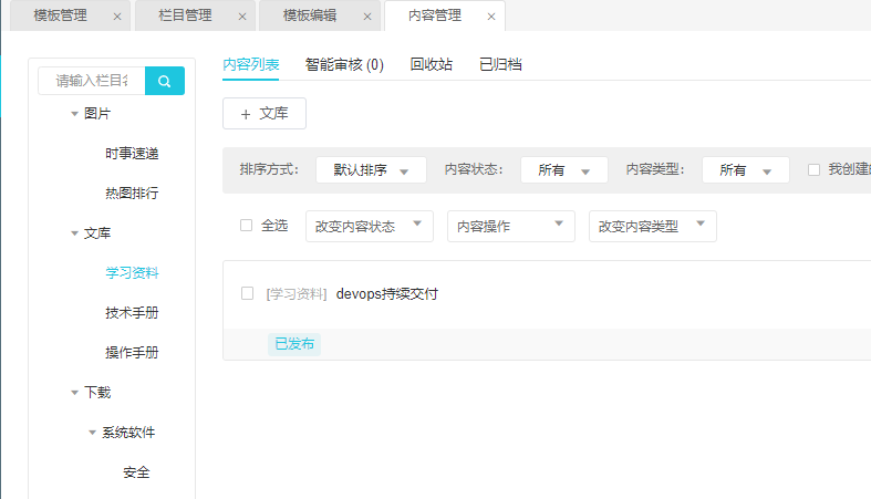 找到原因了,模板编辑界面右上角的适用模型选资讯后显示出来了。想再问下文档的问题,在内容管理里文档各子栏目下新建了文档,但前台文档界面没有按分类tab展示出来,都显示在左下方的其他文档列表,是哪里还需要配置吗