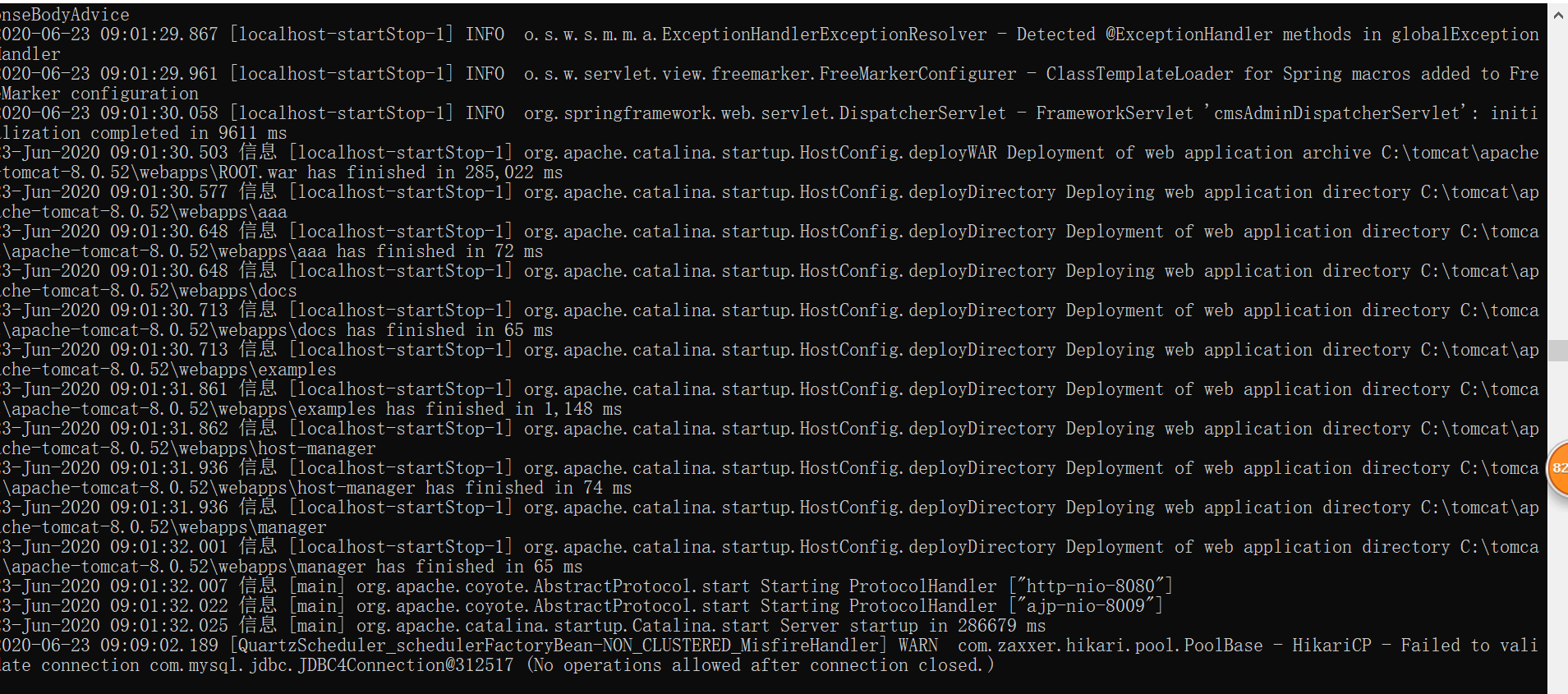 能看下您项目的启动信息吗?