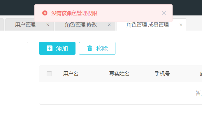 回复第8楼 我现在 就需要角色管理 和用户管理 把角色的权限创建好 直接创建用户分配角色 但是我现在会提示我 没有权限 你看看上面我给你的切图 有点搞不明白这个系统了