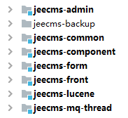 jeecms-common 基础工程,JEECMS框架封装 jeecms-component(所有domain dto dao service)组件工程 jeecms-admin 管理后端服务 (依赖common、component) jeecms-front 公众controller和会员中心api和标签以及所有前台html网页(依赖common、component) jeecms-mq-thread 消息工程,线程实现方式 jeecms-lucene 索引工程,提供内容索引服务,ApacheLucene实现方式 jeecms-elasticsearch 索引工程,提供内容索引服务,elasticsearch实现方式 jeecms-workflow 工作流服务 jeecmd-backup 备份服务(独立运行在数据库服务器) jeecms-redis Redis支持工程,session统一存放redis jeecms-shard shardingsphere配置,支持读写分离配置
