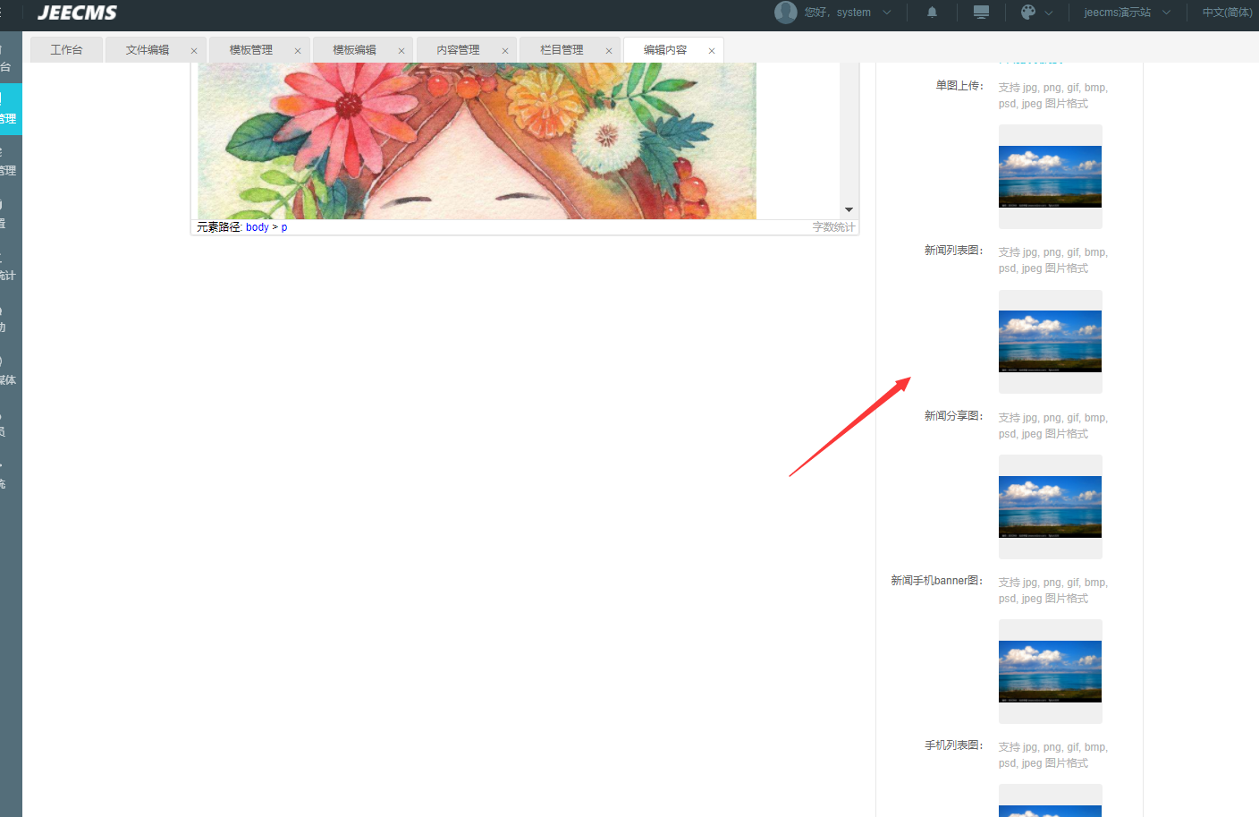 <td>扩展字段值:${attr.attrValue!}</td> <td>数据类型(对应模型字段数据类型):${attr.attrType!}</td> <td>文件类型(1图片 2视频 3音频 4附件):${attr.resourceType!}</td> <td>资源别名:${attr.alias!}</td> <td> <ul> [#if attr.res??] [#list attr.res as res] <li>描述:${res.description!}</li> <li>路径资源:${res.resUrl!}</li> <li>资源别名:${res.resAlias!}</li> [/#list] [/#if] </ul> </td> </tr> 我不太懂你说的字段是什么,因为我觉得模板只能看到前端的标签,也许是这个。 我使用的是您家的默认mode并且每一个选项卡我都上传了图片,依然没有首页轮播,我觉得这好奇怪/ |