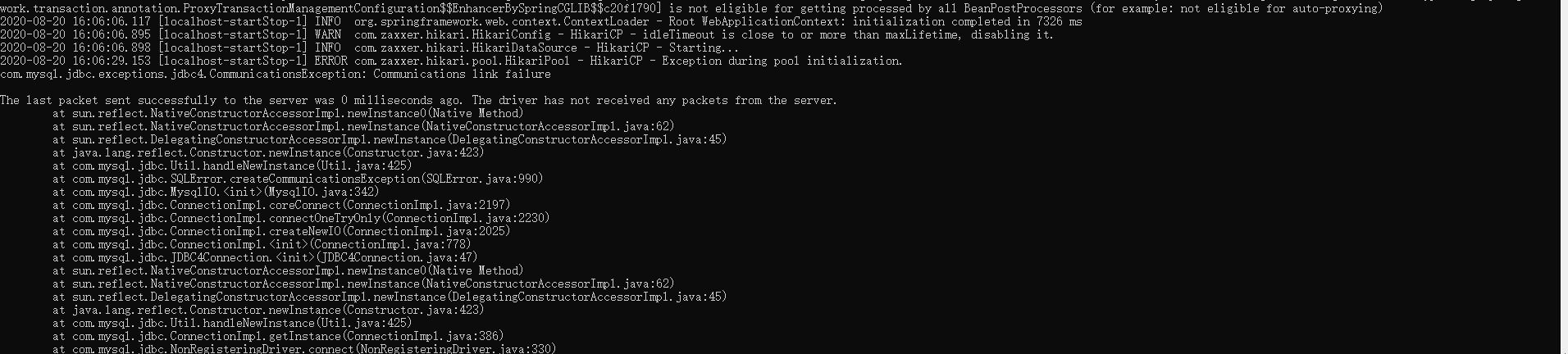 com.mysql.jdbc.exceptions.jdbc4.CommunicationsException: Communications link failure |