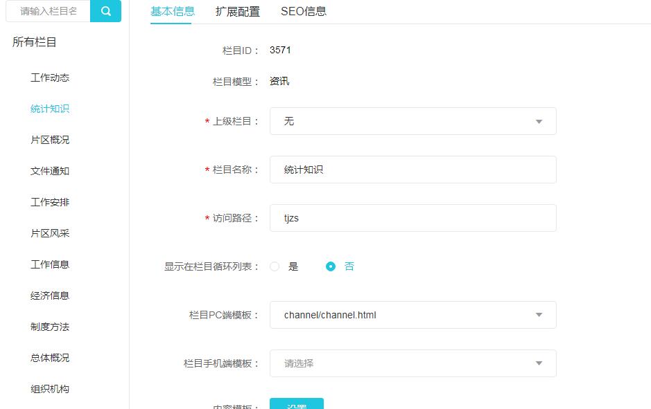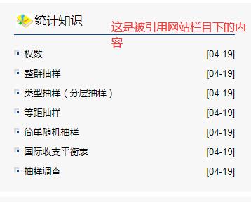 这是被引用网站的“统计知识”栏目后台代码和栏目号