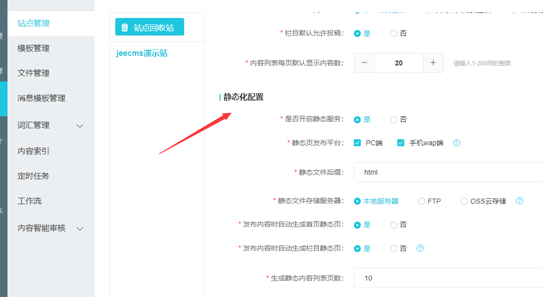 回复第5楼 没有设置。您的意思是如果这里设置开启了,发布文章后就会生成静态页是吗?