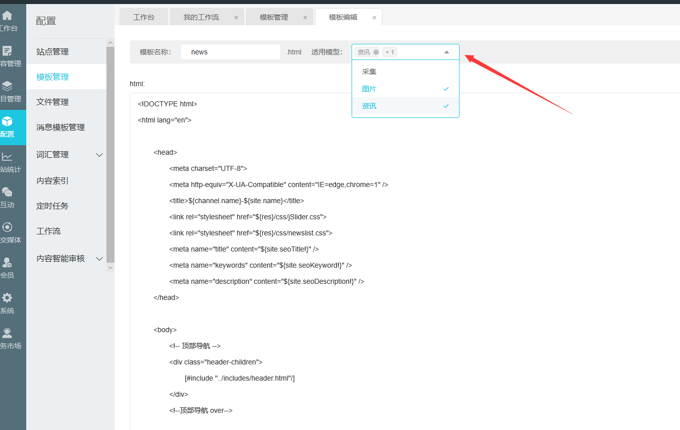 回复第5楼 模型: 即构成网站栏目和内容的不同元素,系统可自定义组合形成不同的模型,系统默认包括新闻、单页、下载、图库、视频、招聘、文库。