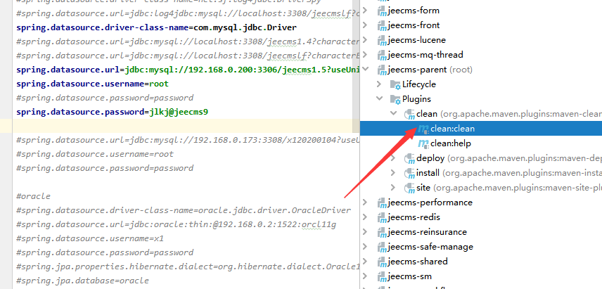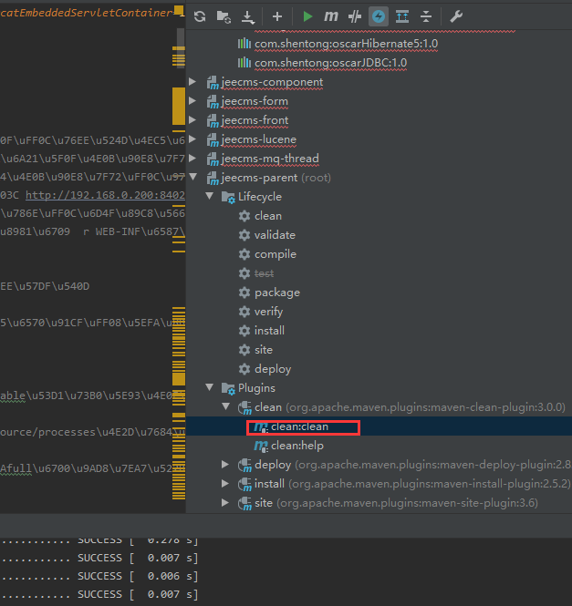 按照文档操作了。Maven->开启跳过单元测试->展开jeecms-parent, 后面带(root)的那个; 双击如图所示的clean -> package