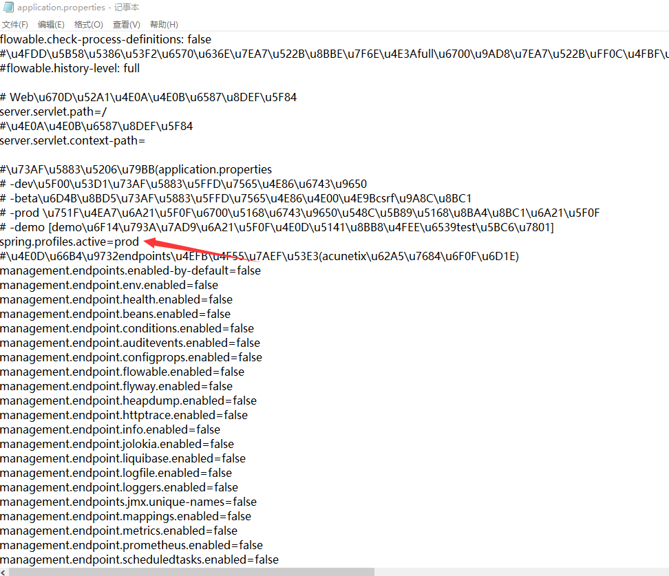 spring.profiles.active=prod 打开文件第十五行已经默认这个了,是不是不用切换了呀 ![]() |