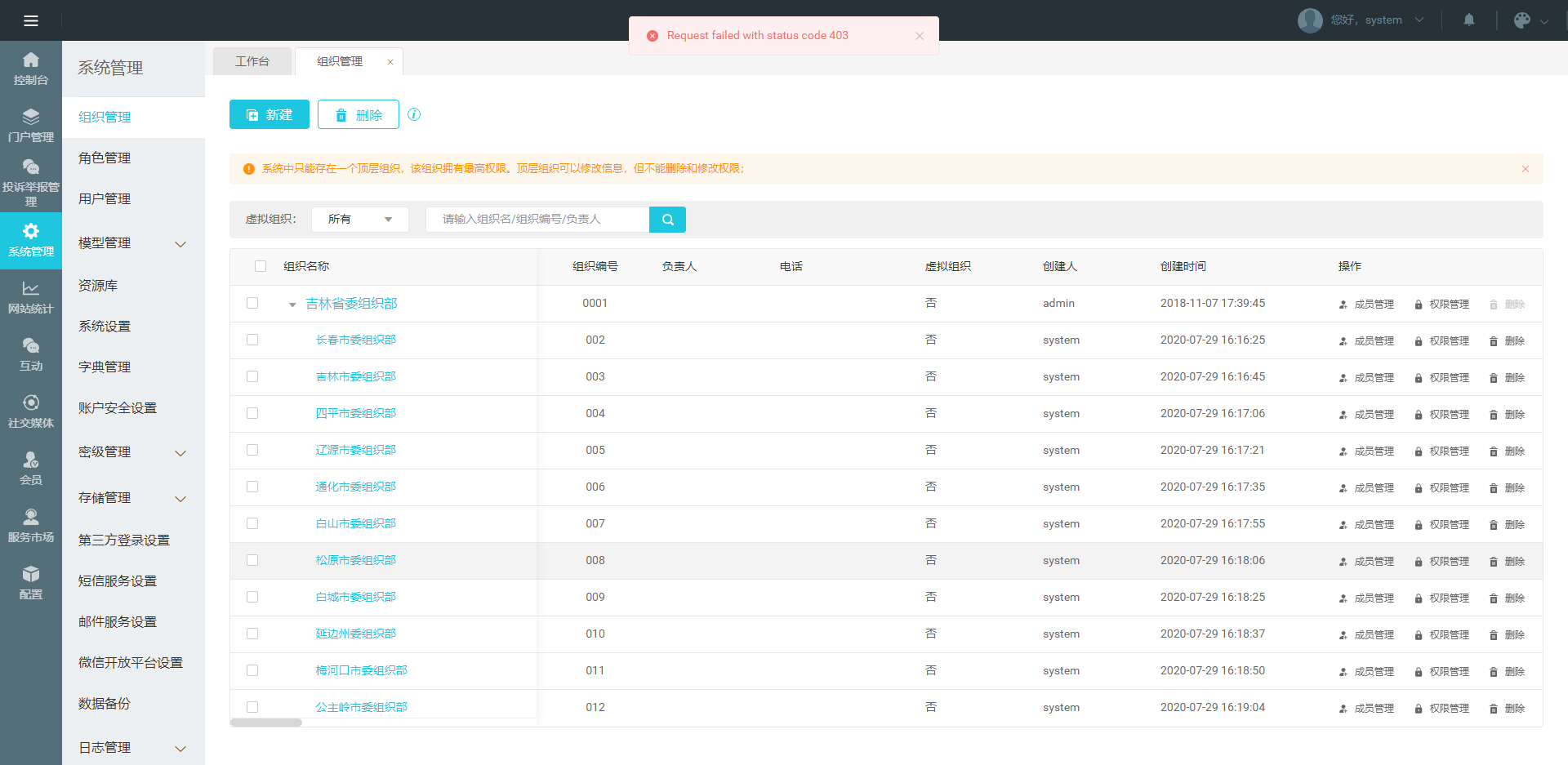 回复第1楼 您删除的是什么组织,所有的还是顶层的还是下级组织