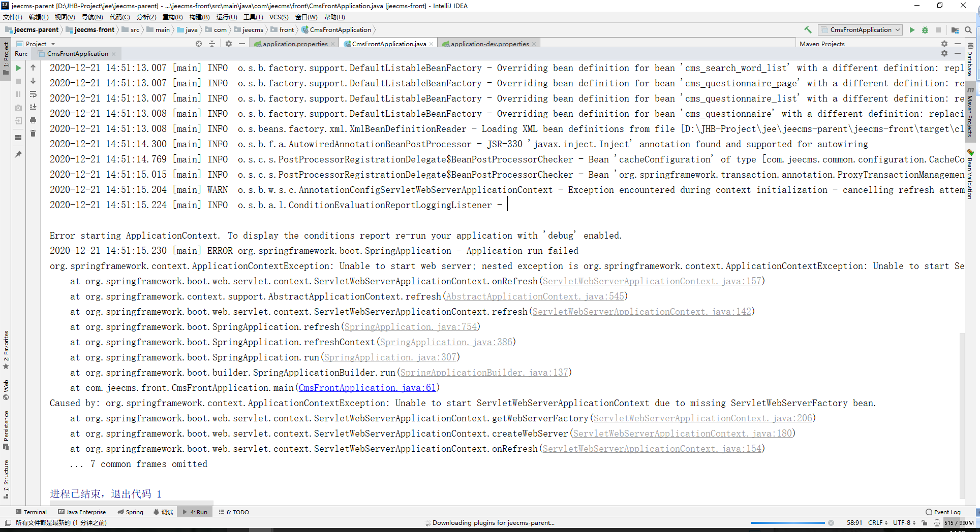 主题 : jeecms1.6标准版idea项目启动报错