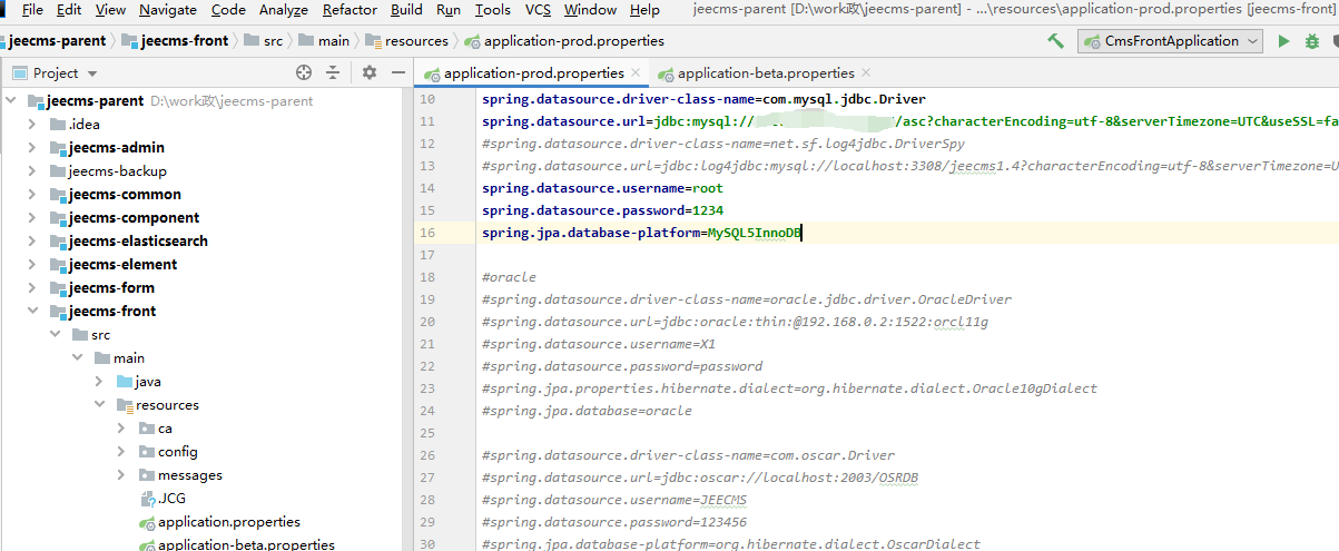 回复第17楼 数据库用的mysql,配置文件用的dev