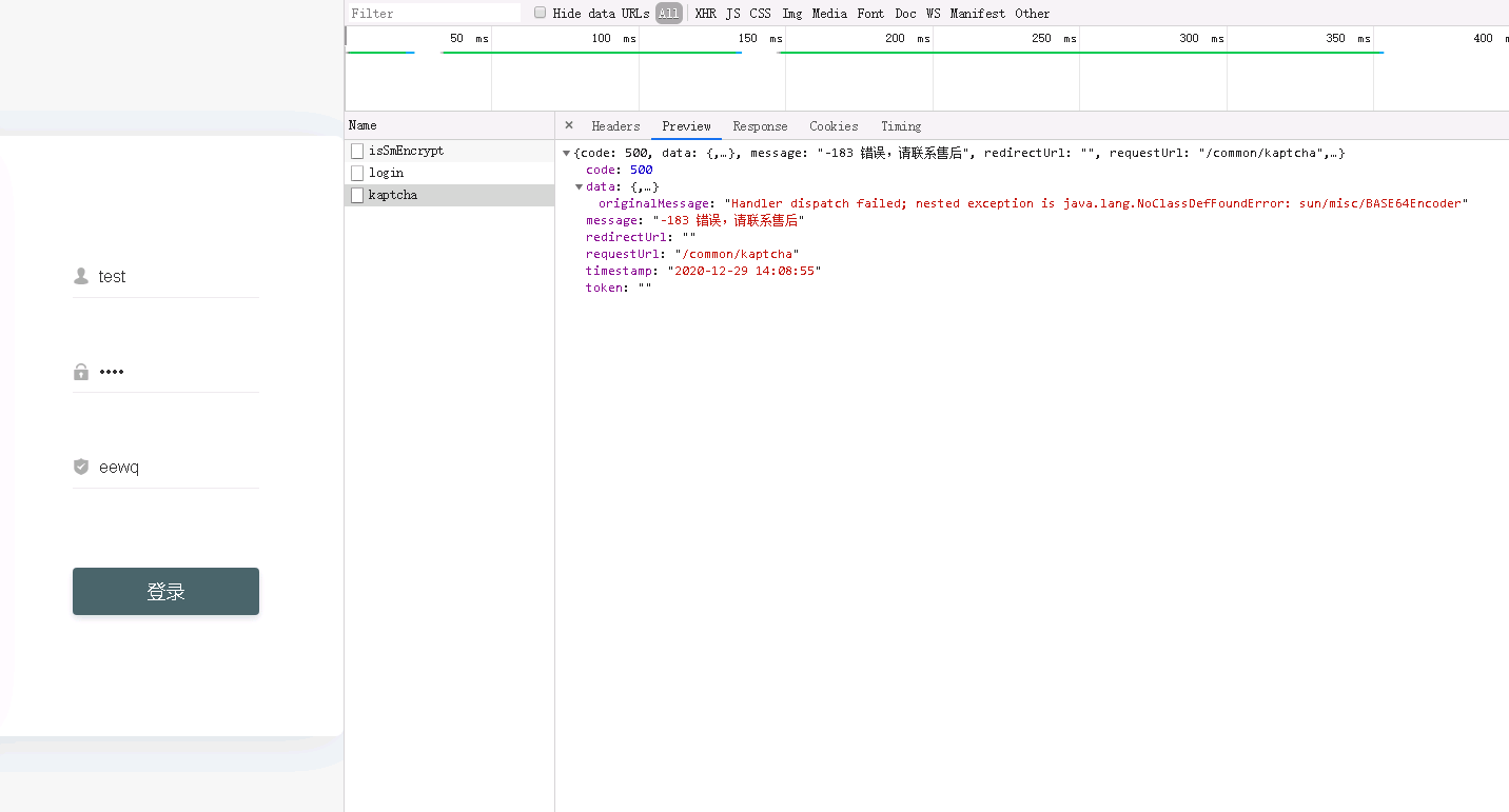 回复第73楼 你好,本地登录后台password错误后有kaptcha提示,但是部署到生产环境配置一样kaptcha图片获取不到并且报错。请看图