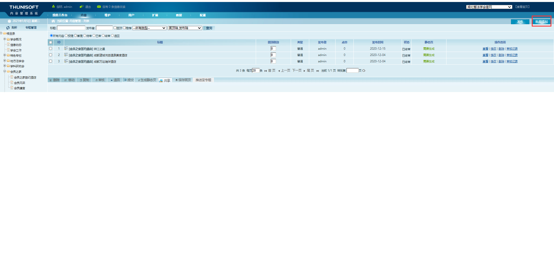 内容板块的  批量添加  功能怎么使用?有没有批量的模板?