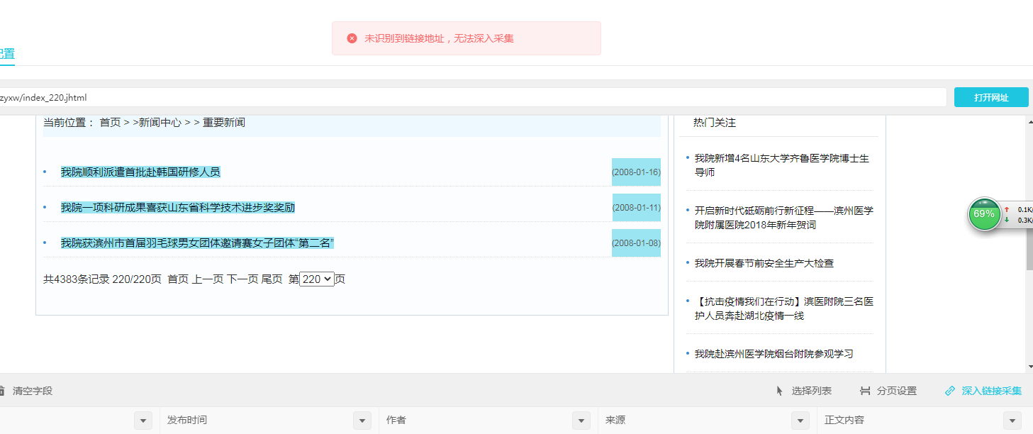 回复第4楼意思是您这样只能采集标题,要采集正文内容,只能进入新闻详情页采集