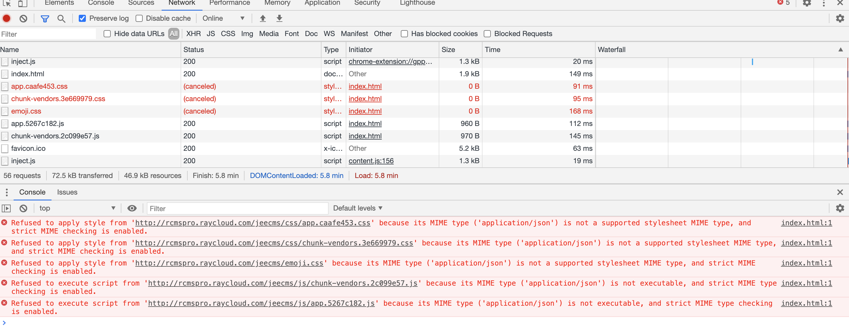 主题 : because its MIME type ('application/json') is not a supported stylesheet MIME type |