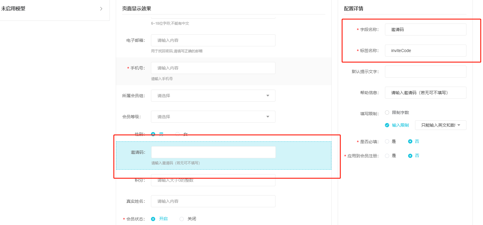 主题 : 会员模型管理 |