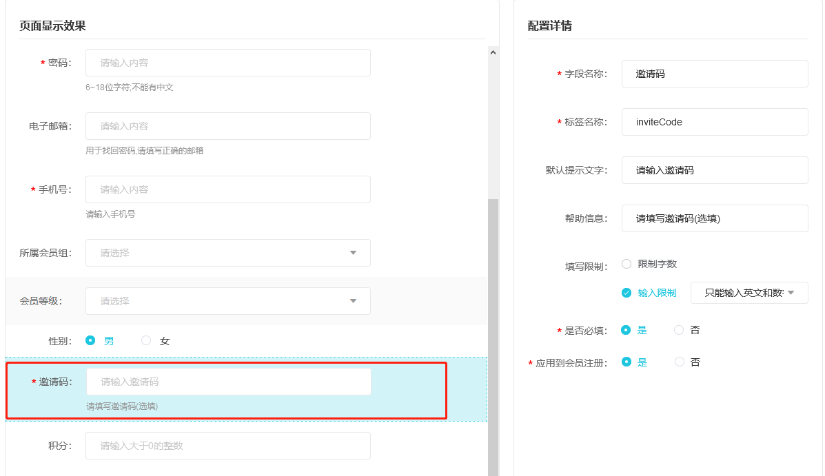 我将这个邀请码字段应用到会员注册,但是在注册界面填写后并没有存入对应的表里,是不是register方法里没有写这个操作