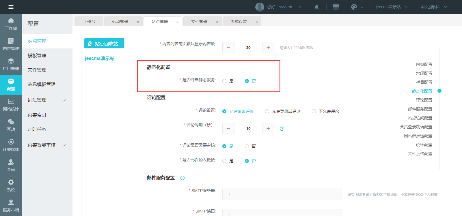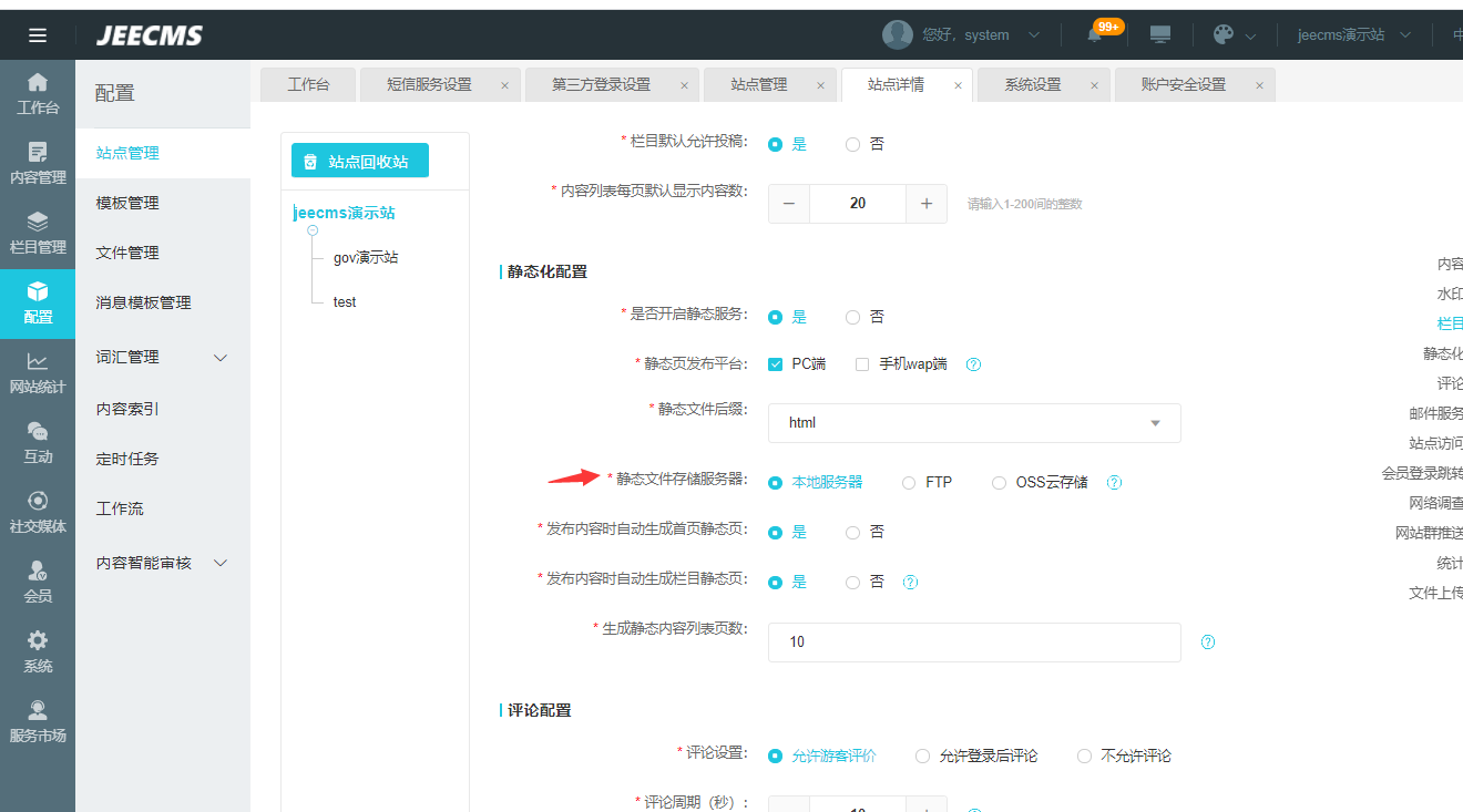 "静态化设置里有配置选择存储位置,ftp还是oss",你说的这个在哪配置呢,我只找到了在站点管理里有是否开启静态服务的配置,没看见哪里有配置存储位置呢