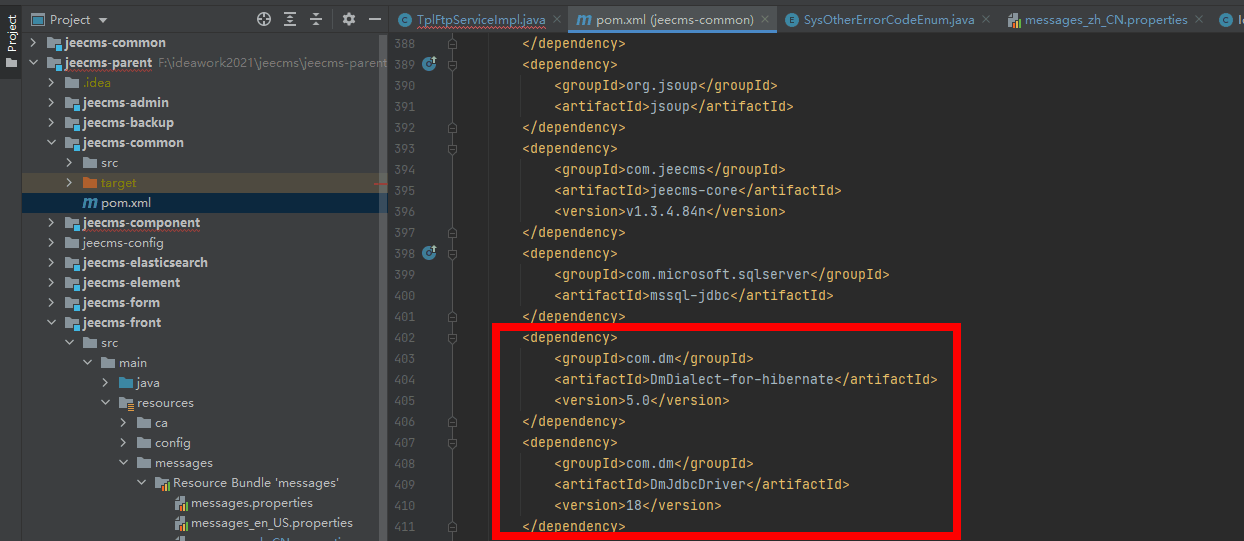 回复第14楼其他的东西我一个没动,这个依赖是有的,包括其他的数据库驱动依赖我也没动