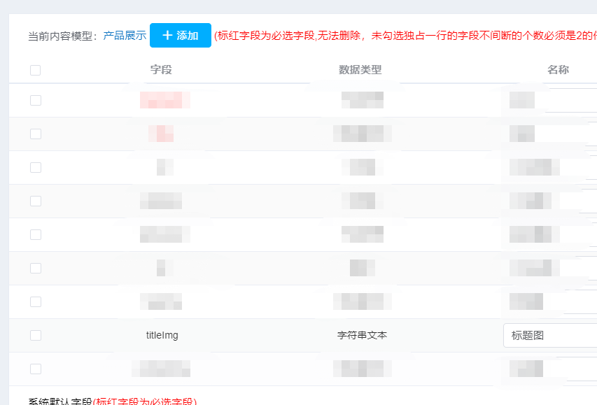 类型图、标题图、内容图三个字段都不显示,这三个字段都是系统当中预先设定好的字段
