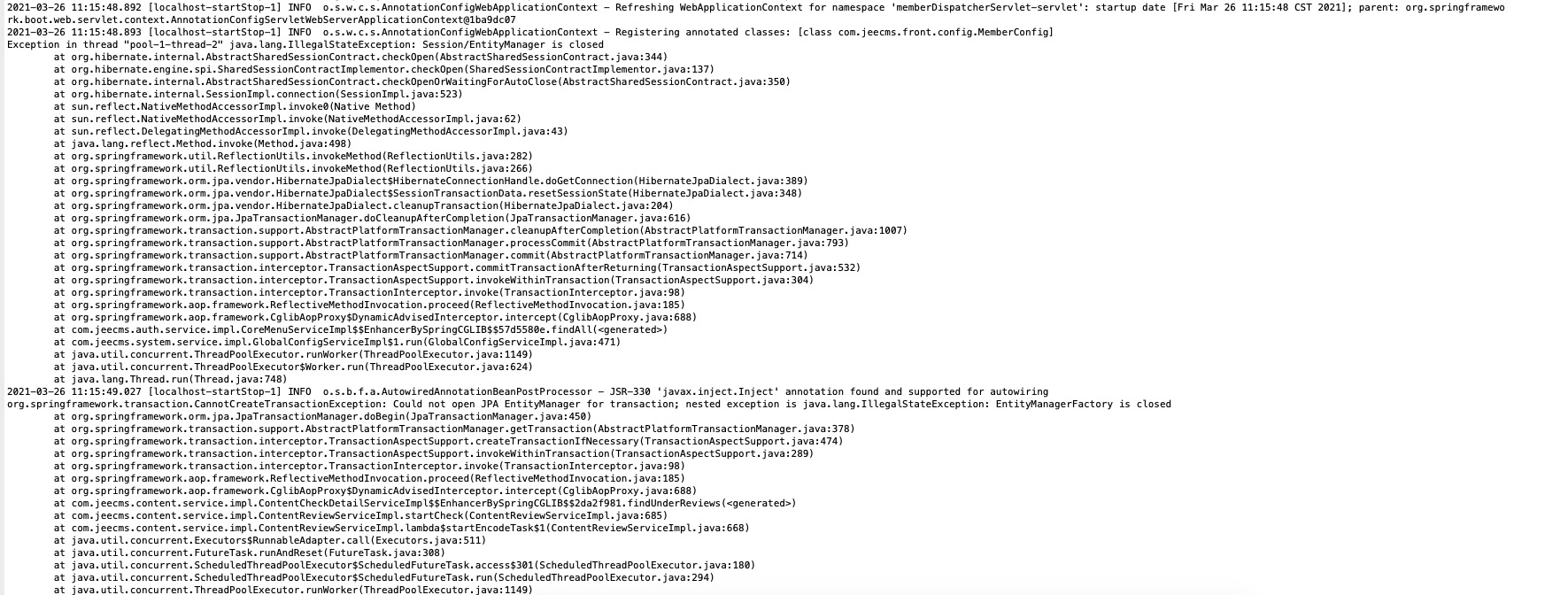 jeecmsx1.8.0 26-Mar-2021 10:55:57.533 信息 [main] org.apache.catalina.startup.VersionLoggerListener.log Server version: Apache Tomcat/8.5.45 26-Mar-2021 10:55:57.582 信息 [main] org.apache.catalina.startup.VersionLoggerListener.log Server built: Aug 14 2019 22:21:25 UTC 26-Mar-2021 10:55:57.582 信息 [main] org.apache.catalina.startup.VersionLoggerListener.log Server number: 8.5.45.0 26-Mar-2021 10:55:57.582 信息 [main] org.apache.catalina.startup.VersionLoggerListener.log OS Name: Linux 26-Mar-2021 10:55:57.582 信息 [main] org.apache.catalina.startup.VersionLoggerListener.log OS Version: 3.10.0-1160.el7.x86_64 26-Mar-2021 10:55:57.582 信息 [main] org.apache.catalina.startup.VersionLoggerListener.log Architecture: amd64 26-Mar-2021 10:55:57.582 信息 [main] org.apache.catalina.startup.VersionLoggerListener.log Java Home: /usr/lib/jvm/java-1.8.0-openjdk-1.8.0.282.b08-1.el7_9.x86_64/jre 26-Mar-2021 10:55:57.582 信息 [main] org.apache.catalina.startup.VersionLoggerListener.log JVM Version: 1.8.0_282-b08 26-Mar-2021 10:55:57.582 信息 [main] org.apache.catalina.startup.VersionLoggerListener.log JVM Vendor: Red Hat, Inc. 26-Mar-2021 10:55:57.583 信息 [main] org.apache.catalina.startup.VersionLoggerListener.log CATALINA_BASE: /usr/local/tomcat 26-Mar-2021 10:55:57.583 信息 [main] org.apache.catalina.startup.VersionLoggerListener.log CATALINA_HOME: /usr/local/tomcat 26-Mar-2021 10:55:57.583 信息 [main] org.apache.catalina.startup.VersionLoggerListener.log Command line argument: -Djava.util.logging.config.file=/usr/local/tomcat/conf/logging.properties 26-Mar-2021 10:55:57.583 信息 [main] org.apache.catalina.startup.VersionLoggerListener.log Command line argument: -Djava.util.logging.manager=org.apache.juli.ClassLoaderLogManager 26-Mar-2021 10:55:57.583 信息 [main] org.apache.catalina.startup.VersionLoggerListener.log Command line argument: -Djdk.tls.ephemeralDHKeySize=2048 26-Mar-2021 10:55:57.583 信息 [main] org.apache.catalina.startup.VersionLoggerListener.log Command line argument: -Djava.protocol.handler.pkgs=org.apache.catalina.webresources 26-Mar-2021 10:55:57.583 信息 [main] org.apache.catalina.startup.VersionLoggerListener.log Command line argument: -Dorg.apache.catalina.security.SecurityListener.UMASK=0027 26-Mar-2021 10:55:57.583 信息 [main] org.apache.catalina.startup.VersionLoggerListener.log Command line argument: -Dignore.endorsed.dirs= 26-Mar-2021 10:55:57.583 信息 [main] org.apache.catalina.startup.VersionLoggerListener.log Command line argument: -Dcatalina.base=/usr/local/tomcat 26-Mar-2021 10:55:57.583 信息 [main] org.apache.catalina.startup.VersionLoggerListener.log Command line argument: -Dcatalina.home=/usr/local/tomcat 26-Mar-2021 10:55:57.583 信息 [main] org.apache.catalina.startup.VersionLoggerListener.log Command line argument: -Djava.io.tmpdir=/usr/local/tomcat/temp 26-Mar-2021 10:55:57.583 信息 [main] org.apache.catalina.core.AprLifecycleListener.lifecycleEvent The APR based Apache Tomcat Native library which allows optimal performance in production environments was not found on the java.library.path: [/usr/java/packages/lib/amd64:/usr/lib64:/lib64:/lib:/usr/lib] 26-Mar-2021 10:55:57.783 信息 [main] org.apache.coyote.AbstractProtocol.init Initializing ProtocolHandler ["http-nio-8080"] 26-Mar-2021 10:55:57.798 信息 [main] org.apache.tomcat.util.net.NioSelectorPool.getSharedSelector Using a shared selector for servlet write/read 26-Mar-2021 10:55:57.821 信息 [main] org.apache.coyote.AbstractProtocol.init Initializing ProtocolHandler ["ajp-nio-8009"] 26-Mar-2021 10:55:57.822 信息 [main] org.apache.tomcat.util.net.NioSelectorPool.getSharedSelector Using a shared selector for servlet write/read 26-Mar-2021 10:55:57.835 信息 [main] org.apache.catalina.startup.Catalina.load Initialization processed in 1599 ms 26-Mar-2021 10:55:57.897 信息 [main] org.apache.catalina.core.StandardService.startInternal Starting service [Catalina] 26-Mar-2021 10:55:57.898 信息 [main] org.apache.catalina.core.StandardEngine.startInternal Starting Servlet Engine: Apache Tomcat/8.5.45 26-Mar-2021 10:55:57.926 信息 [localhost-startStop-1] org.apache.catalina.startup.HostConfig.deployDirectory Deploying web application directory [/usr/local/tomcat/webapps/docs] 26-Mar-2021 10:55:58.429 信息 [localhost-startStop-1] org.apache.catalina.startup.HostConfig.deployDirectory Deployment of web application directory [/usr/local/tomcat/webapps/docs] has finished in [502] ms 26-Mar-2021 10:55:58.429 信息 [localhost-startStop-1] org.apache.catalina.startup.HostConfig.deployDirectory Deploying web application directory [/usr/local/tomcat/webapps/examples] 26-Mar-2021 10:55:59.101 信息 [localhost-startStop-1] org.apache.catalina.startup.HostConfig.deployDirectory Deployment of web application directory [/usr/local/tomcat/webapps/examples] has finished in [672] ms 26-Mar-2021 10:55:59.101 信息 [localhost-startStop-1] org.apache.catalina.startup.HostConfig.deployDirectory Deploying web application directory [/usr/local/tomcat/webapps/host-manager] 26-Mar-2021 10:55:59.157 信息 [localhost-startStop-1] org.apache.catalina.startup.HostConfig.deployDirectory Deployment of web application directory [/usr/local/tomcat/webapps/host-manager] has finished in [56] ms 26-Mar-2021 10:55:59.157 信息 [localhost-startStop-1] org.apache.catalina.startup.HostConfig.deployDirectory Deploying web application directory [/usr/local/tomcat/webapps/manager] 26-Mar-2021 10:55:59.197 信息 [localhost-startStop-1] org.apache.catalina.startup.HostConfig.deployDirectory Deployment of web application directory [/usr/local/tomcat/webapps/manager] has finished in [40] ms 26-Mar-2021 10:55:59.197 信息 [localhost-startStop-1] org.apache.catalina.startup.HostConfig.deployDirectory Deploying web application directory [/usr/local/tomcat/webapps/ROOT] 10:56:11,876 |-INFO in ch.qos.logback.classic.LoggerContext[default] - Could NOT find resource [logback-test.xml] 10:56:11,876 |-INFO i