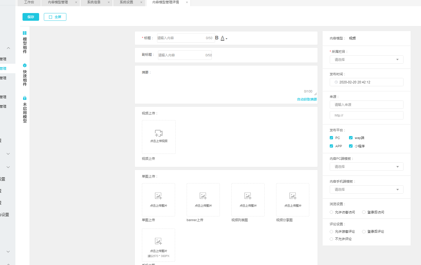 主题 : x1.4.1版本视频内容模板管理没有设置视频上传大小的地方