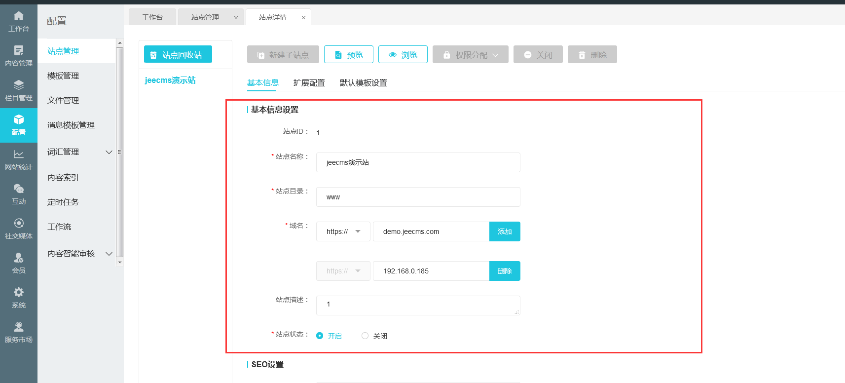 主题 : jeecms站点管理的信息存储在哪张数据表中