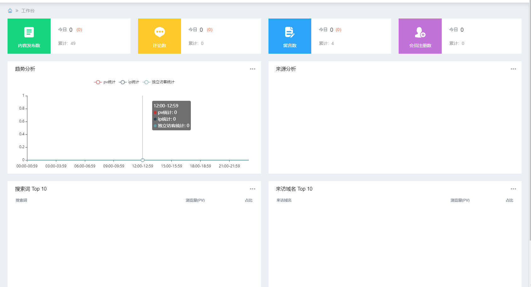 还是不行,现在是能在前台页面上显示出来浏览量之类的,但是后台统计图还是没有数据,后台统计图的数据就一闪消失了