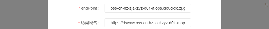 oss界面EndPoint地址,Bucket域名地址和说明书上的不太一样,默认就有http://在前面, |
