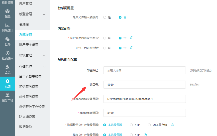 您好,您把域名设置那块截个图这边看看(位置是 配置-站点管理-点击站点名称后的基本信息),还有,系统--系统设置--系统部署配置那里的端口号检查下