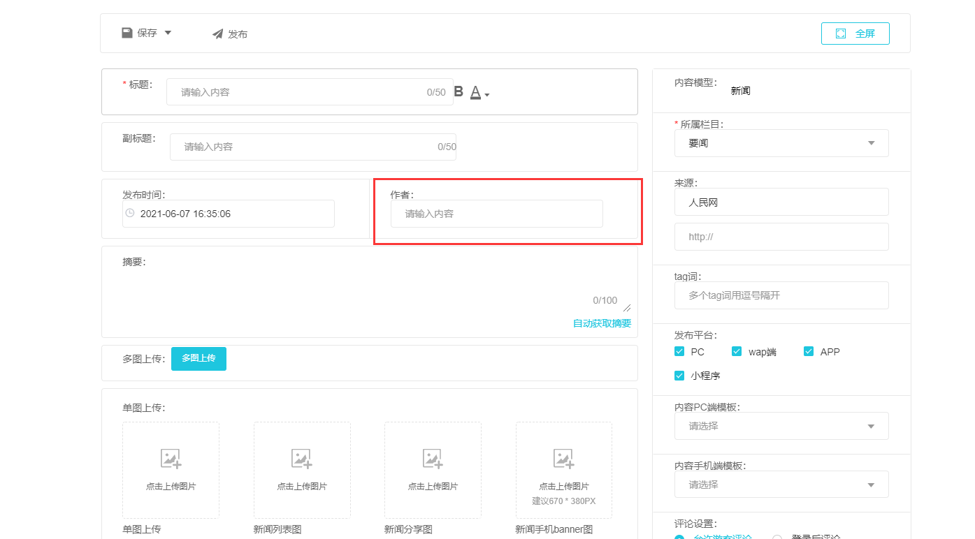 jeecms1x系列2021年1月购买,后台新增内容时,作者默认为登录用户,怎么设置