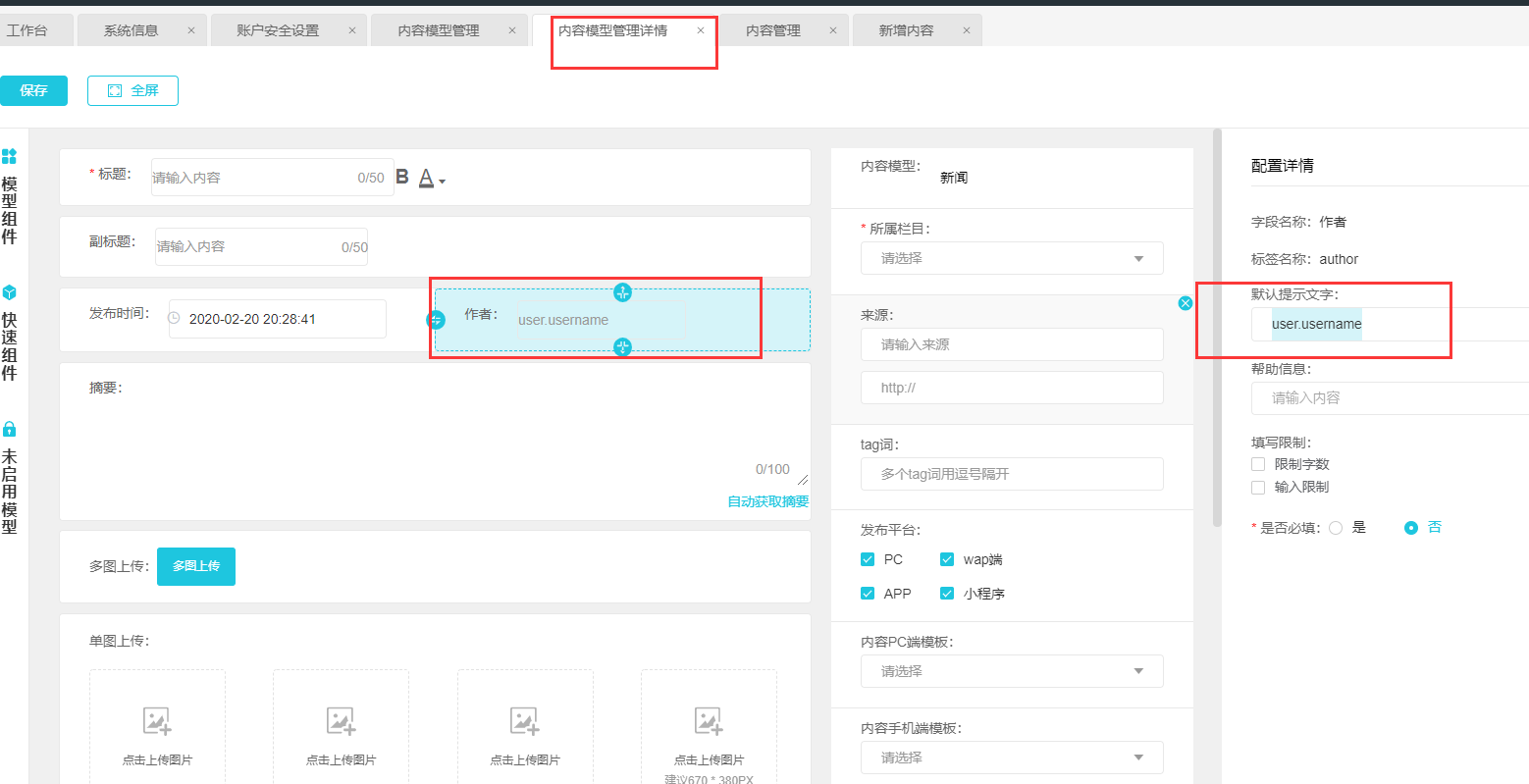 发内容时候,作者一栏我要默认取当前用户,不是手填