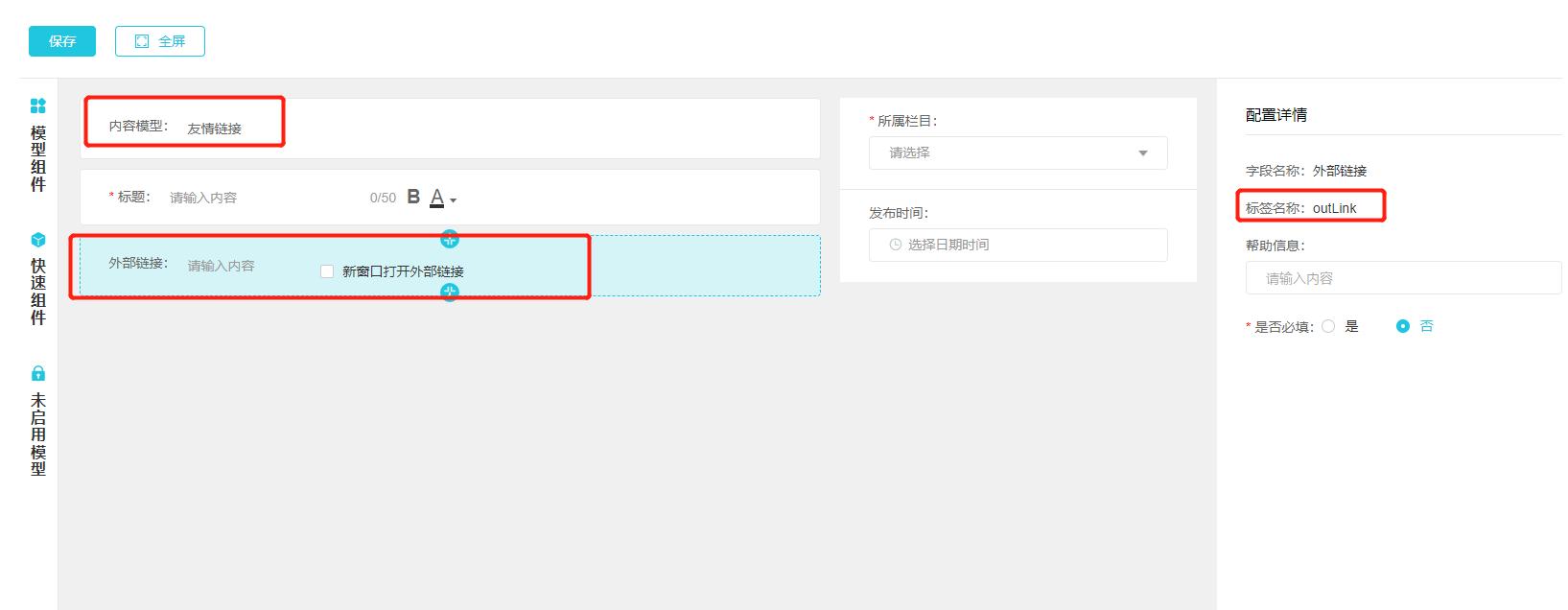 后台设置了外部链接,前台正常调用这个内容的链接地址就可以获取 |