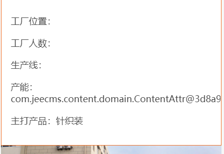 </p> <p> 工厂人数:${a.attr.peopleCount.Value!} </p> <p> 生产线:${a.attr.productLine.Value!} </p> <p> 产能:${a.attr.produce!} </p> <p> 主打产品:${a.description!} |